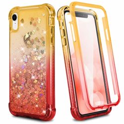 Ruky iPhone XR Full Body Rugged Glitter Liquid Phone Case for Women Girls. Soft TPU glitter back cover with hard frame built in screen protector, provides 360°full body protection,