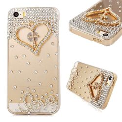iPhone SE Case,Iphone5S Case,iPhone 5 Case – Mavis’s Diary Luxury 3D Handmade Bling Crystal Golden Love Heart Cross with Shiny Sparkle Rhinestone Diamonds Girly Clear Hard Cover with Soft Clean Cloth