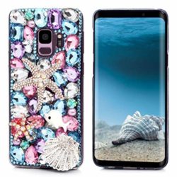 Galaxy S9 Case, Mavis’s Diary Full Edge 3D Handmade Luxury Bling Crytal Fashion Design Shiny Gem Pearl Rhinestone Diamond Clear Hard Protective Plastic PC Cover for Samsung Galaxy S9 – Starfish Shell