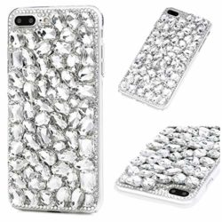 iPhone 7 Plus Case,iPhone 8 Plus Case, Mavis’s Diary Full Edge 3D Handmade Luxury Bling Crytal Fashion Design Shiny Gem Pearl Rhinestone Diamond Clear Hard Cover – Sliver