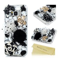 Galaxy S8 Case,Samsung Galaxy S8 Case 3D Handmade Bling Diamonds Black and White Camellia Bow Gold Crown Hairball Shiny Rhinestone Crystal Clear Full Body Protection Hard PC Cover by Mavis’s Diary