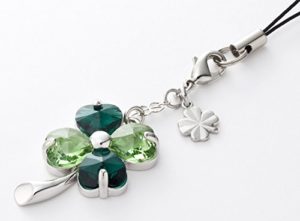 “Country of manufacture: Japan. Quality control: Japan. Crystal: Austria. Brand: Kisaragi. Design: Japan. Weight: about 0.018 pounds, Clover: about 1.25 inches. Material: Swarovski crystal, brass, resin, Gold,etc.” Product Features
