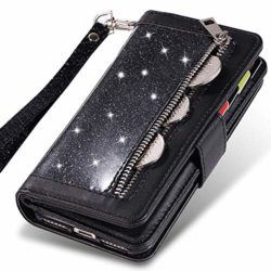 iPhone 7 Plus Card Holder Case,iPhone 8 Plus Wallet Case,Kudex Bling Glitter Flip Leather Zipper Money Pocket Magnetic Purse Case [Kickstand] with 9 Cards Holder&Strap for iPhone 7Plus /