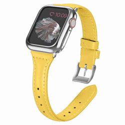MARGE PLUS Slim Genuine Leather Bands with Case Cover Compatible for Apple Watch. Size: Compatible with Apple Watch 40mm 38mm Band Color: Yellow Buckle and Adapters: Sliver Material: Genuine