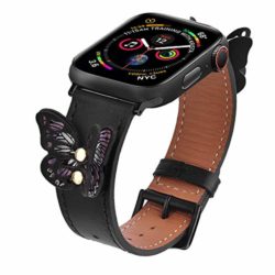 V-MORO Leather Bands Compatible with 40mm Apple Watch Band 38mm Fashion Butterfly Replacement for iWatch Series 4/3/2/1 Strap with Black Stainless Steel Buckle Women Girls(Black,38/40)