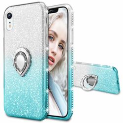 Maxdara Case for iPhone XR Glitter Case Ring Grip Holder Gradient Kickstand Series Bling Sparkle Diamond Rhinestone Bumper Luxury Pretty Fashion Girls Women Case XR 6.1 inches(Silver Teal)