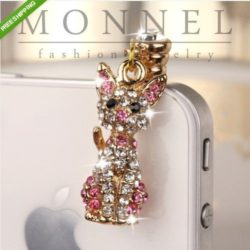 IP392-B Cute Crystal Pink 3D Cat Pet 3.5mm Ear Jack Anti Dust Plug Cover for iPhone & Android