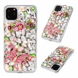 iPhone 11 Pro Max Case – Mavis’s Diary 3D Handmade Luxury Bling Rose Gold Butterfly Pink Flower Floral Shiny Crystal Colorful Diamonds Glitter Rhinestones Gems Clear Hard PC Cover