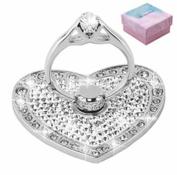 Nsiucion Cell Phone Ring Stand Holder, Heart Bling Crystals Finger Ring Stand, 360 Degree Rotating Metal Ring Kickstand Grip Holder for Phones and Tablets (Silver)