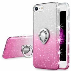 Pretty Faux Digitally Printed Ombre Pink Glitter and A Glam Faux Digitally Printed Gold Jewel Confetti Overlay PopSocket For Women and Girls. A Perfect Gift For Any Occasion, Even