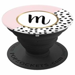 M Initial M Letter M monogram with a monogrammed M on a black and white dots abstract animal print inspired painted brush strokes polka dot pattern. A girly pastel