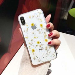 Product Features Compatible with Apple iPhone XR. This case is made of soft silicone and natural real flowers . Pretty real dried flower and leaf embedded design, for best