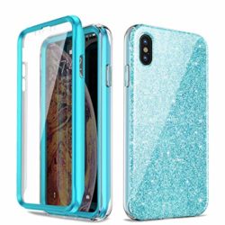 Glitter Case Compatible with iPhone XR Luxury Shiny Glitter Sparkle Bling Case for iPhone XR Bling Crystal Anti-Slick Slim Cover, Protective Case for iPhone XR with Built-in Screen Protector(Blue)