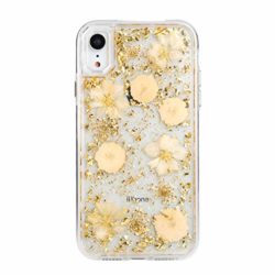 Specification: 1. Compatibility: iPhone XR; 2. Color: Gold, Purple, Pink; 3. Material: Soft TPU Frame, Hard PC Back Shell, Real Flowers and Metallic Elements Embedded. Features: 1. The flower