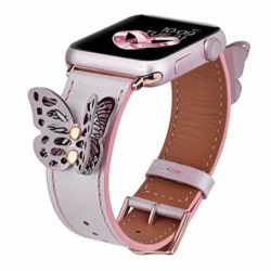 TRUMiRR Watchband Compatible with 38mm 40mm Apple Watch Women, Fashion Flower Genuine Leather Band Rose Gold Stainless Steel Buckle Strap Wristband for iWatch Series 5 4 3 2 1