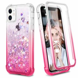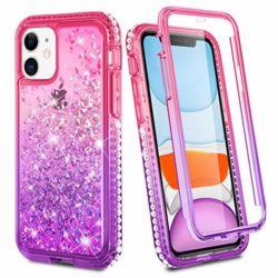 Ruky iPhone 11 Full Body Rugged Glitter Liquid protective Case for Women Girls. Soft TPU glitter back cover with hard frame built in screen protector, provides 360°full body protection,