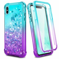 Ruky iPhone Xs/iPhone X Full Body Rugged Glitter Liquid Phone Case for Women Girls. Soft TPU glitter back cover with hard frame built in screen protector, provides 360°full body