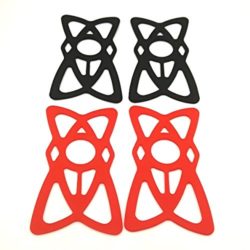 1. Elasticated strap with plastic coated metal edge/corner brackets. 2. Strap finished with rubber nodes, providing surface friction for enhanced grip. 3. Strap mounts across back of phone. 4.