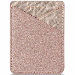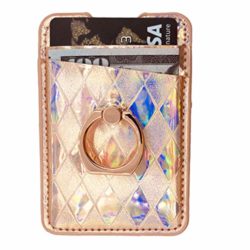 Card Holder for Back of Phone, Stick on Wallet with 3M Adhesive Sleeves Sticker for iPhone and Android Smartphones & Cases Glitter Phone Card Pouch with Ring Features: Card