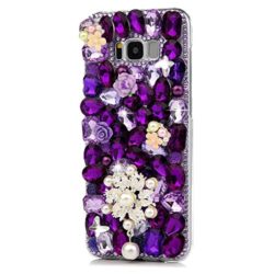 STENES Galaxy Note 8 Case – 3D Handmade Luxury Crystal Pearl Flowers Pendant Butterfly Floral Sparkle Rhinestone Design Cover Bling Case for Samsung Galaxy Note 8 Retro Anti Dust Plug – Purple