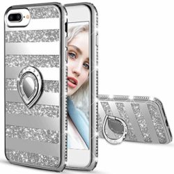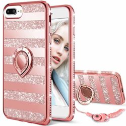 Maxdara iPhone 8 Plus Case, iPhone 7 Plus Glitter Mirror Striped Cute Women Case Bling Shiny Diamond Rhinestone with Kickstand Ring Stand Girls Case for iPhone 6 Plus/6s Plus/7