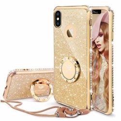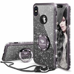 Luxury Bling Bling Sleek Design OCYCLONE bling diamond iPhone XS Max case edge is inlaid with artificial rhinestone diamond, suits for teen, girls and women. Diamond Ring Kickstand Allow