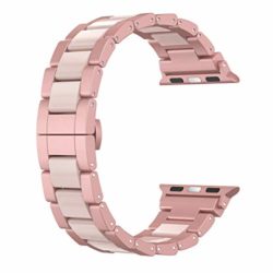 Wearlizer Rose Gold Compatible Apple Watch Band 38mm 40mm Womens iWatch Lightweight Aluminum Pink Resin Fashion Wristband Replacement Strap Unique New Bracelet Metal Clasp Series 4 3 2 1 Sport Edition