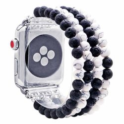Features: 1.This apple watch band is made of of high quality lava rock and white turquoise beads, durable elastic rope, unique, exquisite, smooth, comfortable, feminine and elegant looking which