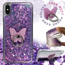 ZASE Unique Design Protective Phone Carrying Case Dual Layered Liquid Glitter cover with matching Phone Ring stand grip holder compatible with the 6.1-inch screen Apple iPhone XR -released in